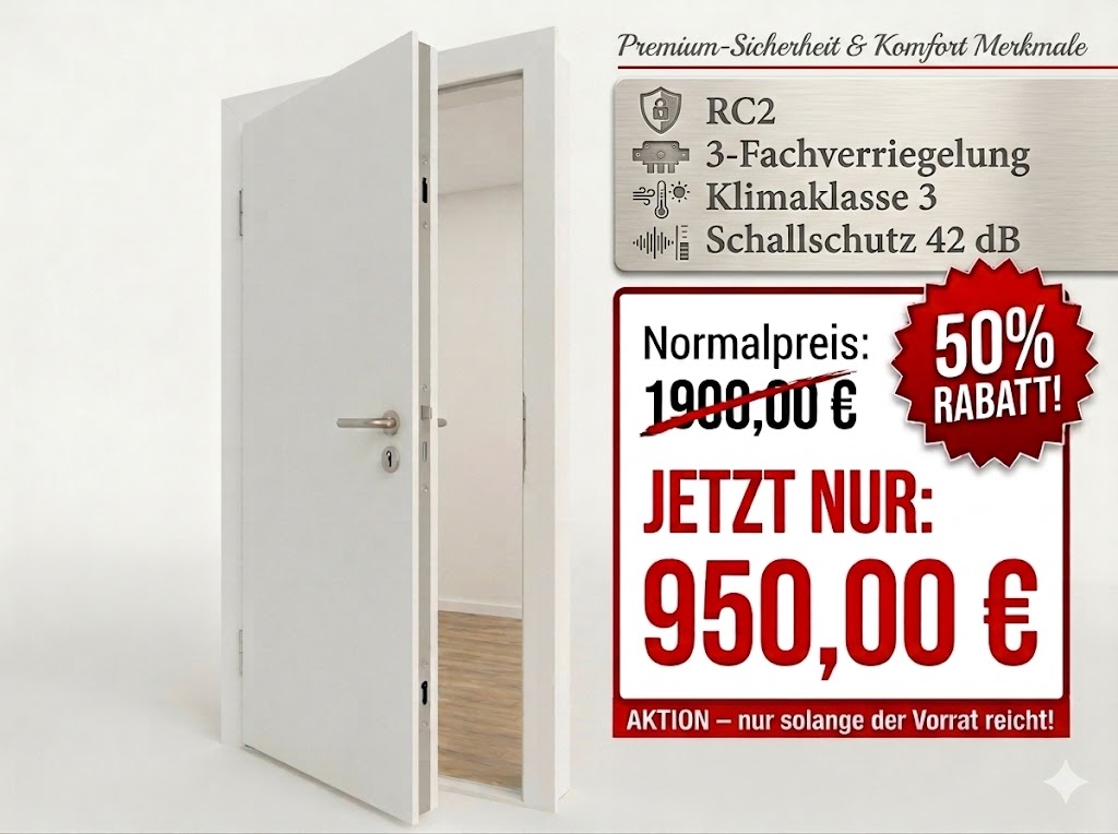 Türen, die ursprünglich über 1.900 € kosten, sind derzeit um bis zu 50 % reduziert.
