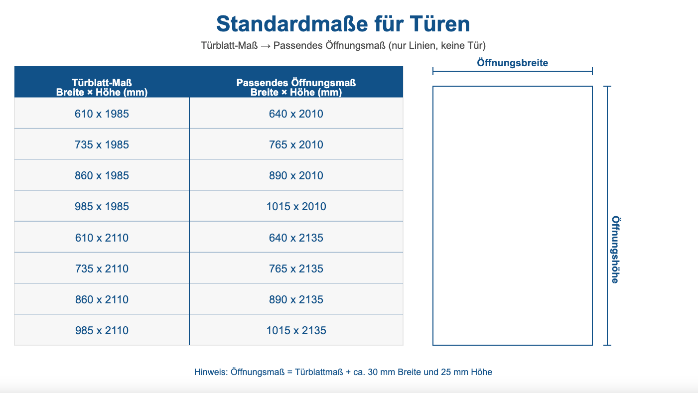 Bitte beachten Sie: Die Türen sind nur in begrenzten Maßen und Stückzahlen verfügbar.